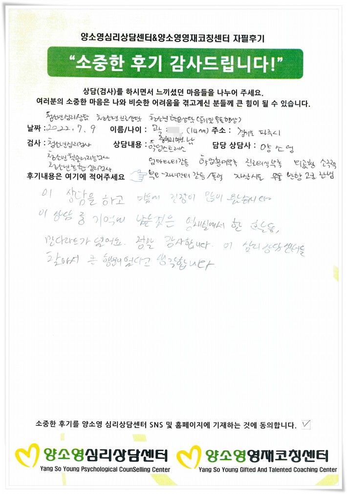 [2022.7.9] 청소년상담 / 청소년심리,웩슬러지능,종합심리검사