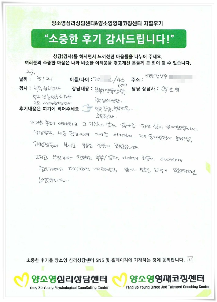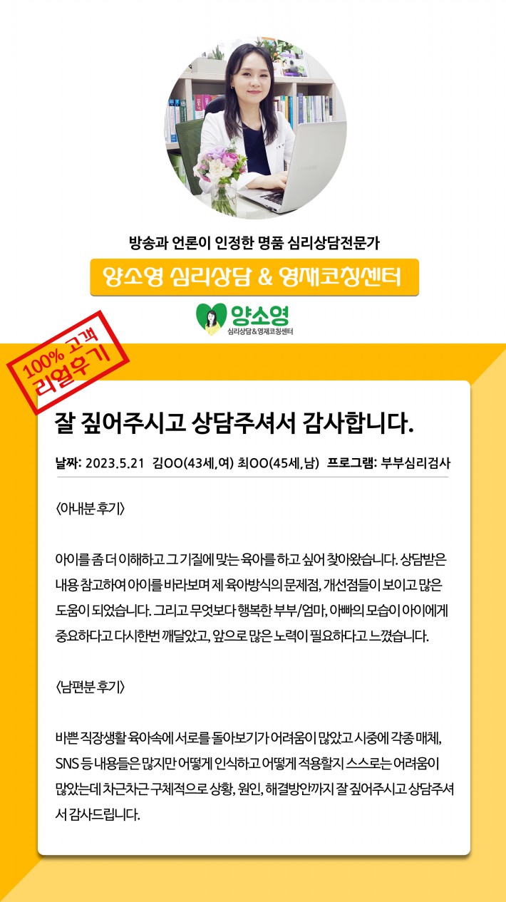 양소영 심리상담센터를 먼저 경험하신