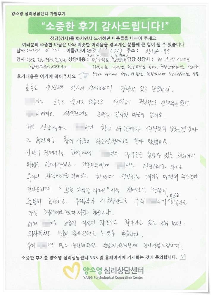 [2019.4.27] 아동상담 / 집중력,아동정서,부모양육태도검사