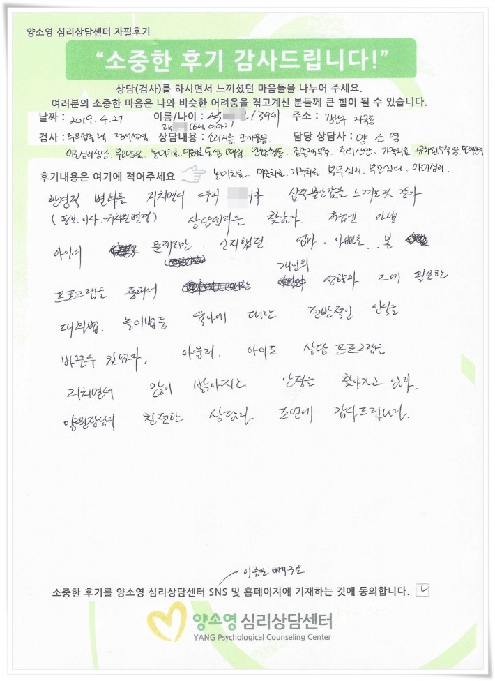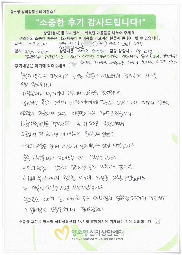 [2019.4.27] 아동상담 / 집중력,아동정서,부모양육태도검사