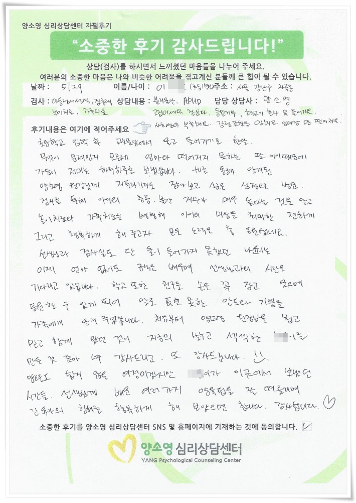 [2019.5.29] 아동상담 / 아동정서성격,집중력검사