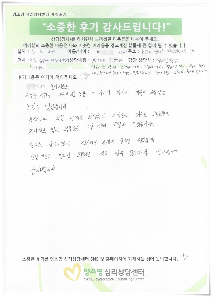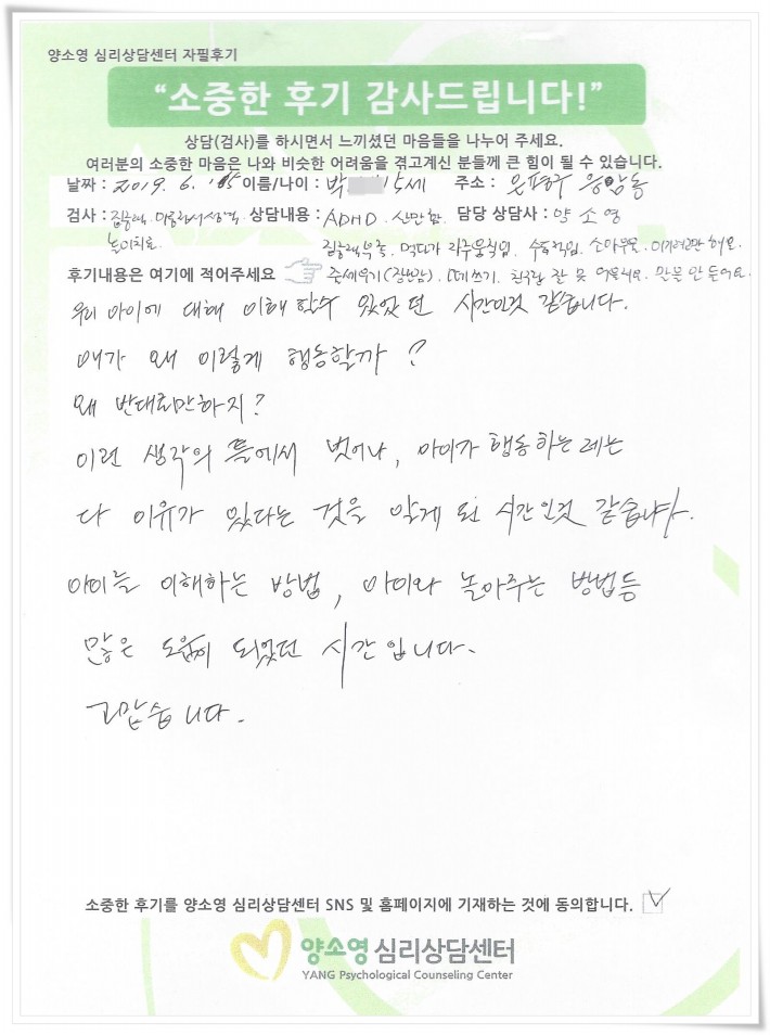 [2019.6.15] 아동상담 / 집중력,아동정서성격검사