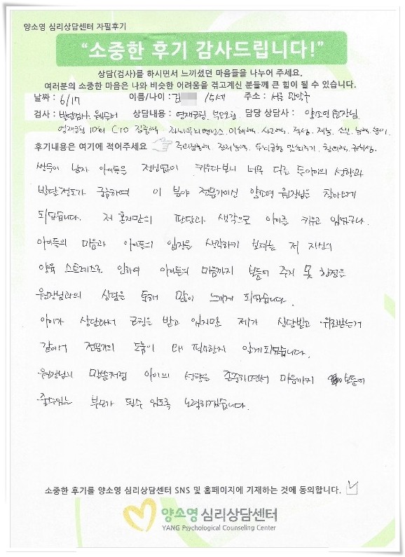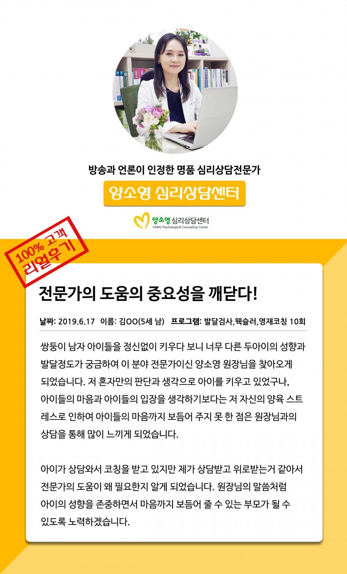 양소영 심리상담센터를 먼저 경험하신