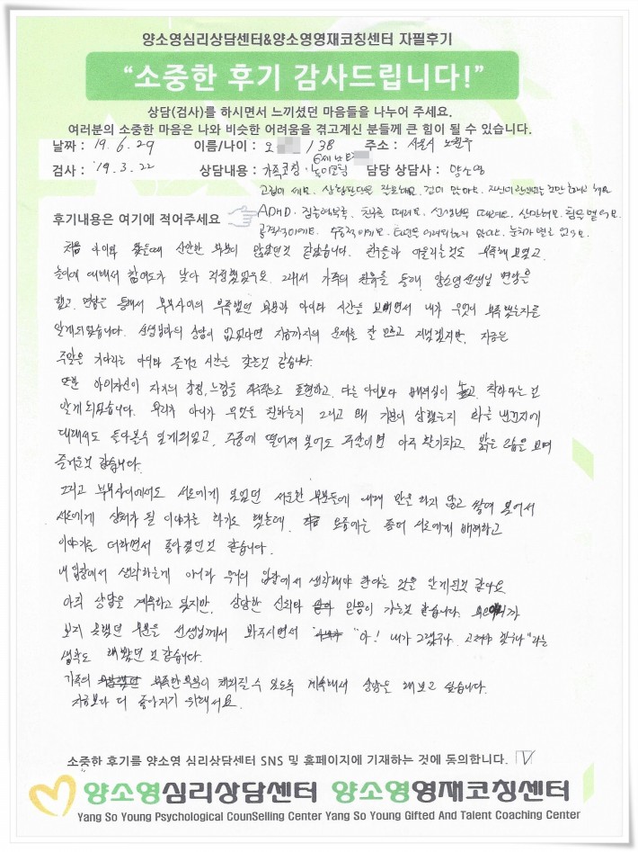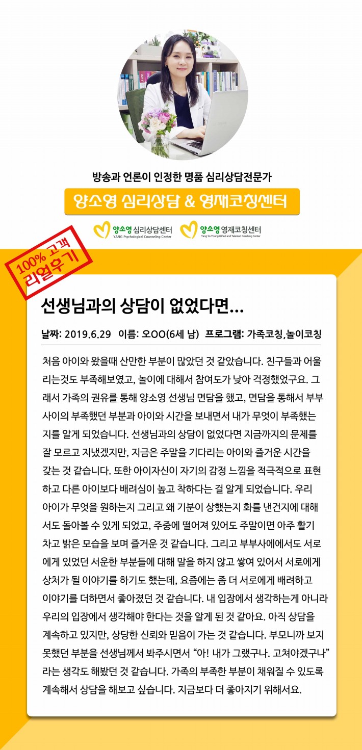 양소영 심리상담센터를 먼저 경험하신