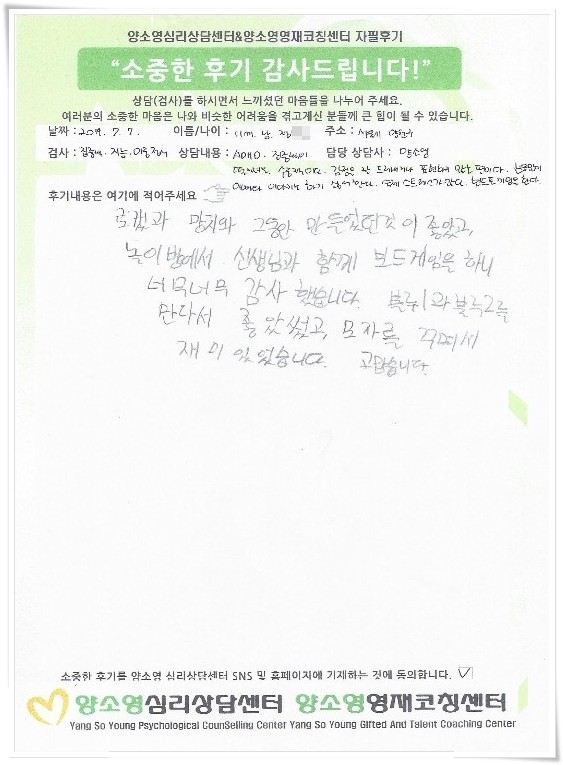 [2019.7.7] 아동상담 / 집중력,아동정서성격검사