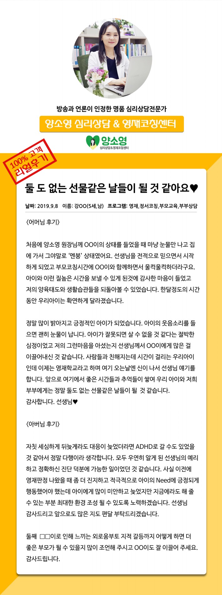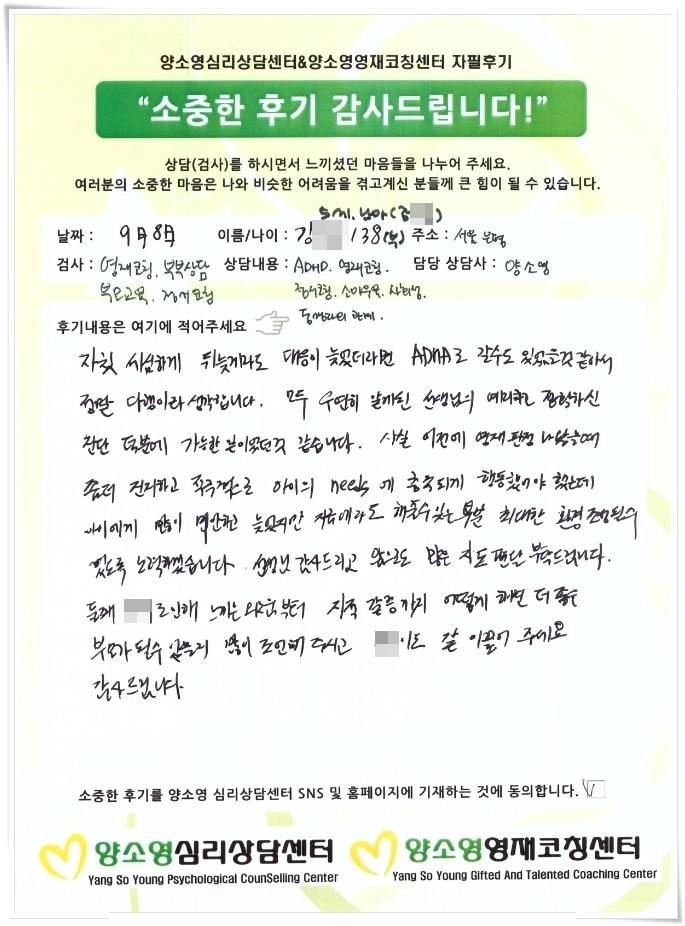 양소영 심리상담센터를 먼저 경험하신