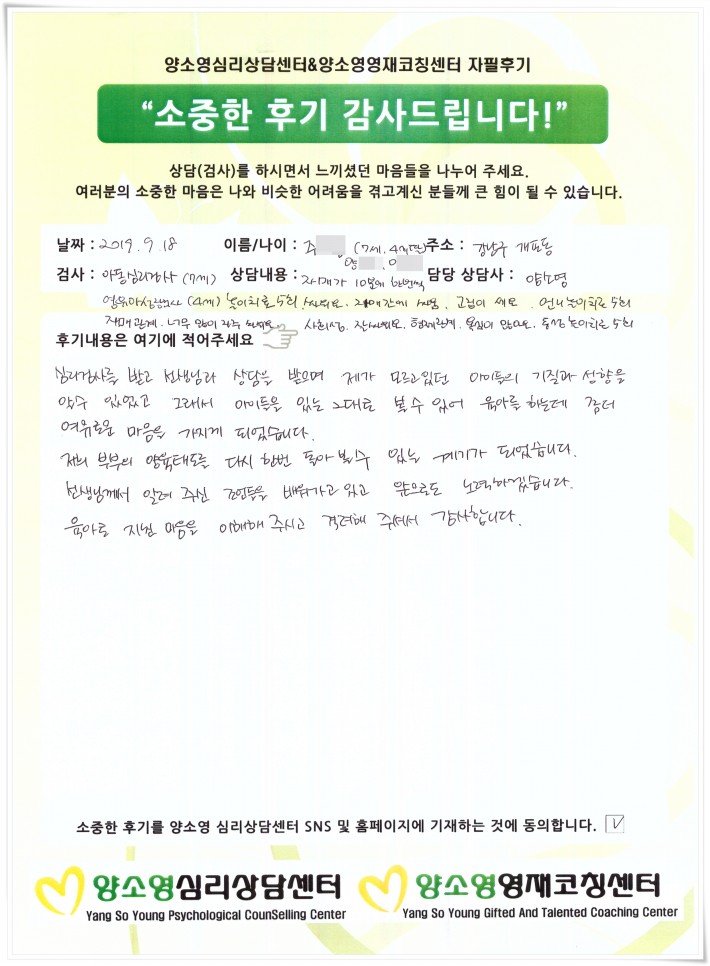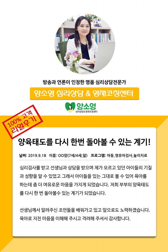 양소영 심리상담센터를 먼저 경험하신