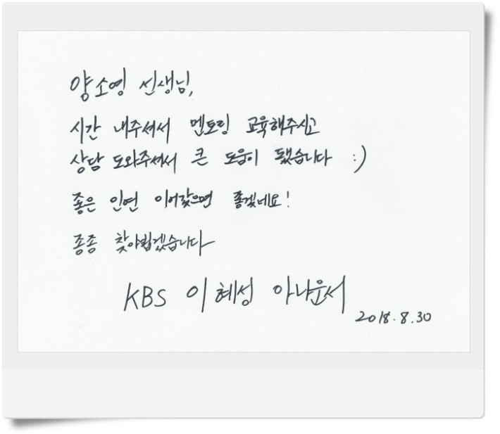 [2018.8.30] KBS 이혜성 아나운서, 박건 PD 님 방문