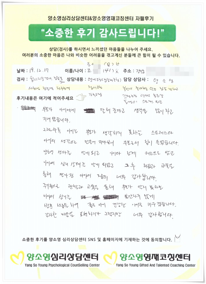 [2019.12.26] 아동상담 / 언어,집중력,영유아발달검사