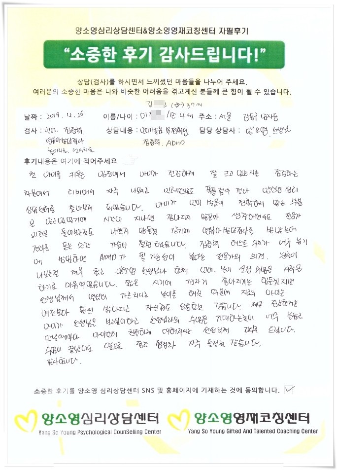 [2019.12.26] 아동상담 / 언어,집중력,영유아발달검사