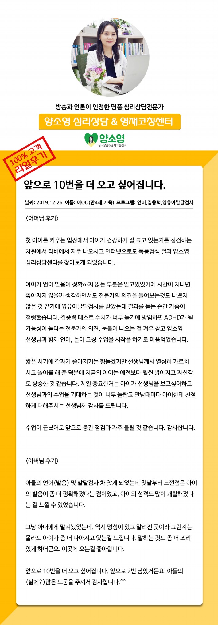 양소영 심리상담센터를 먼저 경험하신