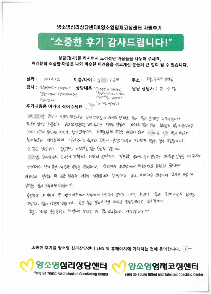 [2020.4.6] 아동상담 / 종합심리검사,부모상담,가족코칭