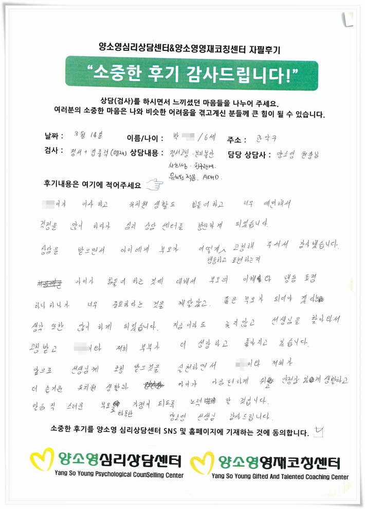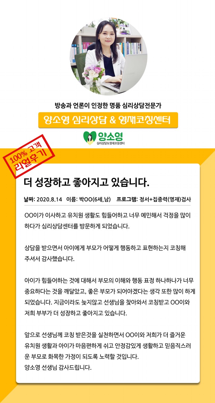 양소영 심리상담센터를 먼저 경험하신