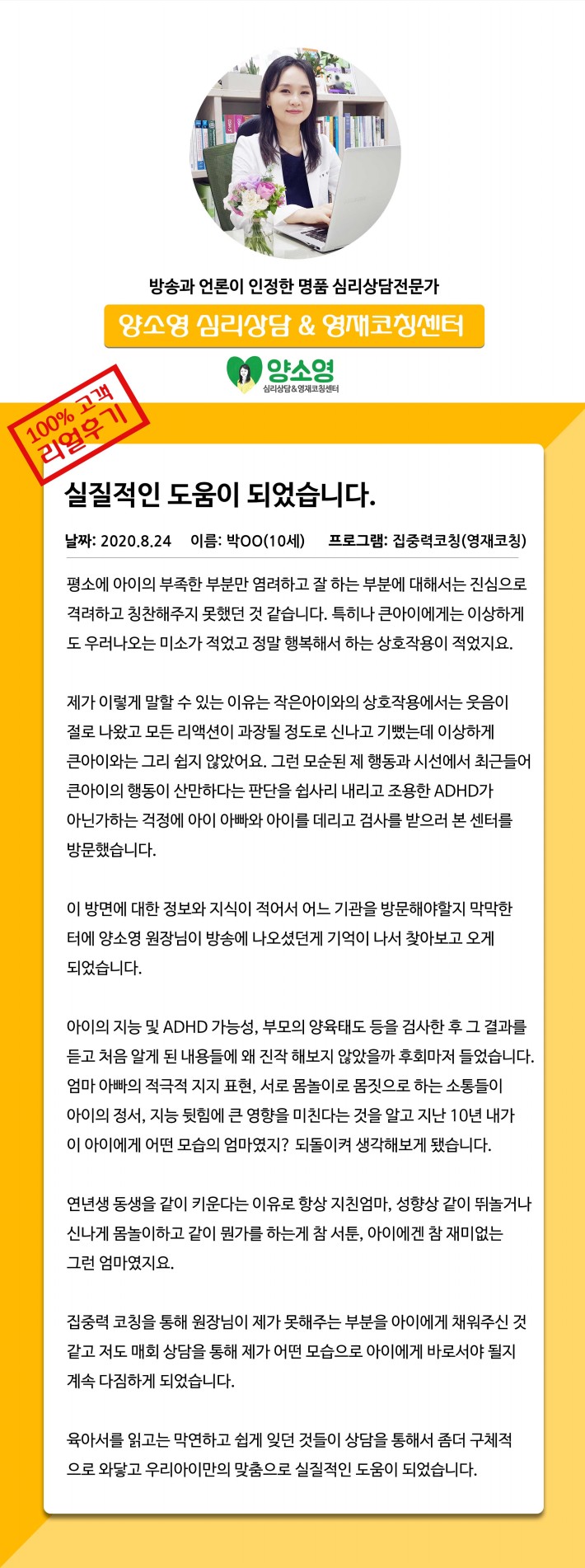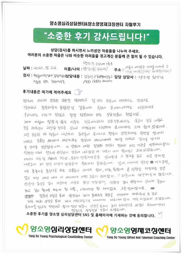 [2020.8.24] 아동상담 / 집중력코칭(영재코칭)
