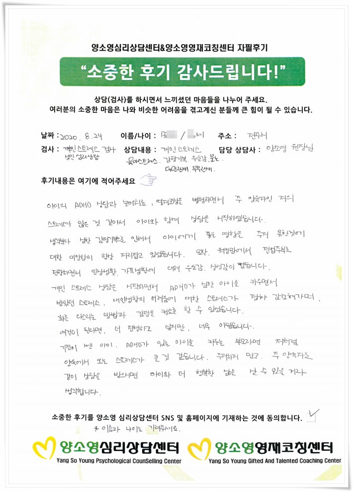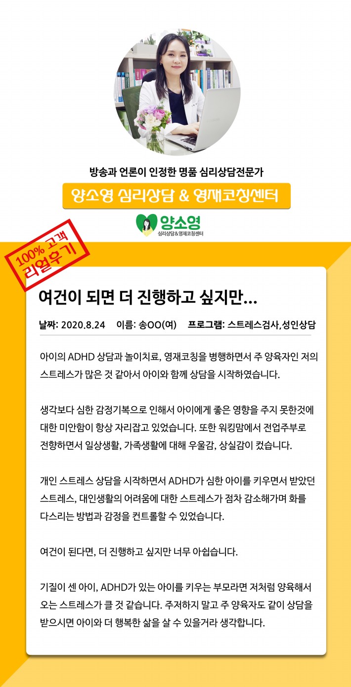 양소영 심리상담센터를 먼저 경험하신