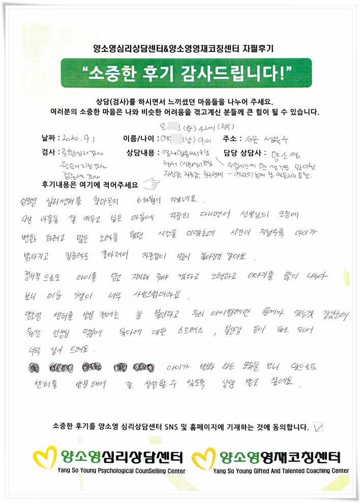 [2020.9.7] 아동상담 / 심리,학습,진로,집중력,부모양육검사
