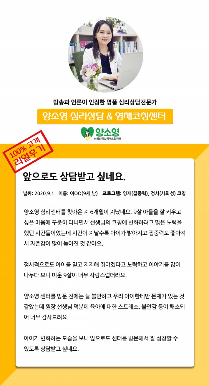 양소영 심리상담센터를 먼저 경험하신