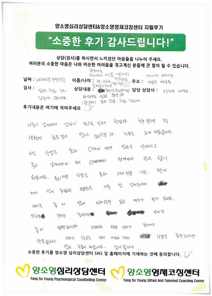 [2020.9.7] 아동상담 / 심리,학습,진로,집중력,부모양육검사