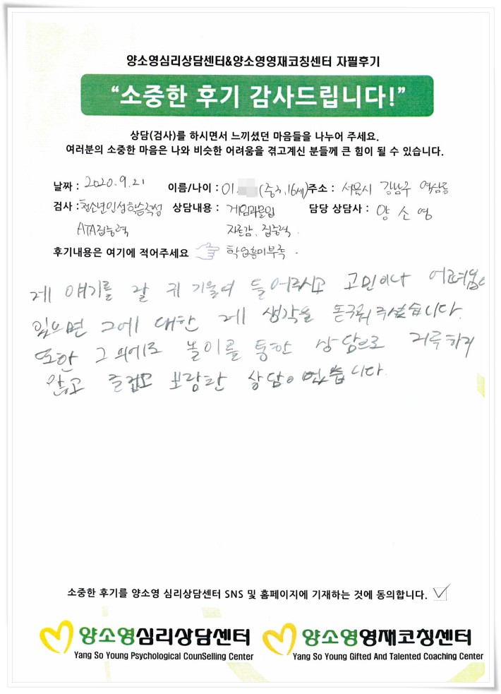 [2020.9.17] 청소년상담 / 청소년인성학습적성,집중력 검사