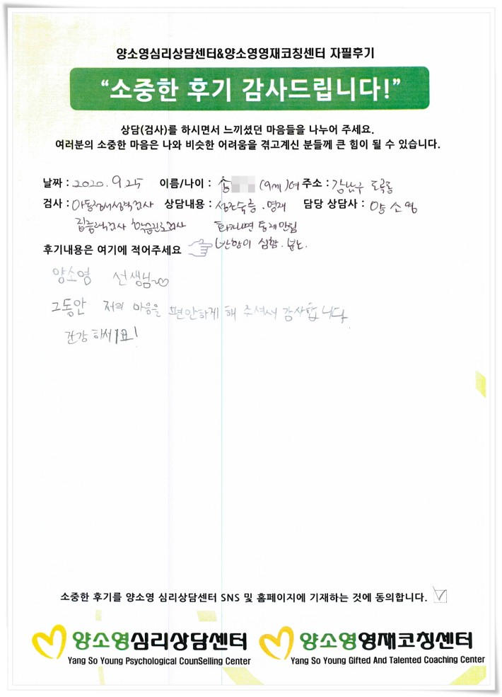 [2020.9.25] 아동상담 / 아동정서성격,집중력,학습진로검사