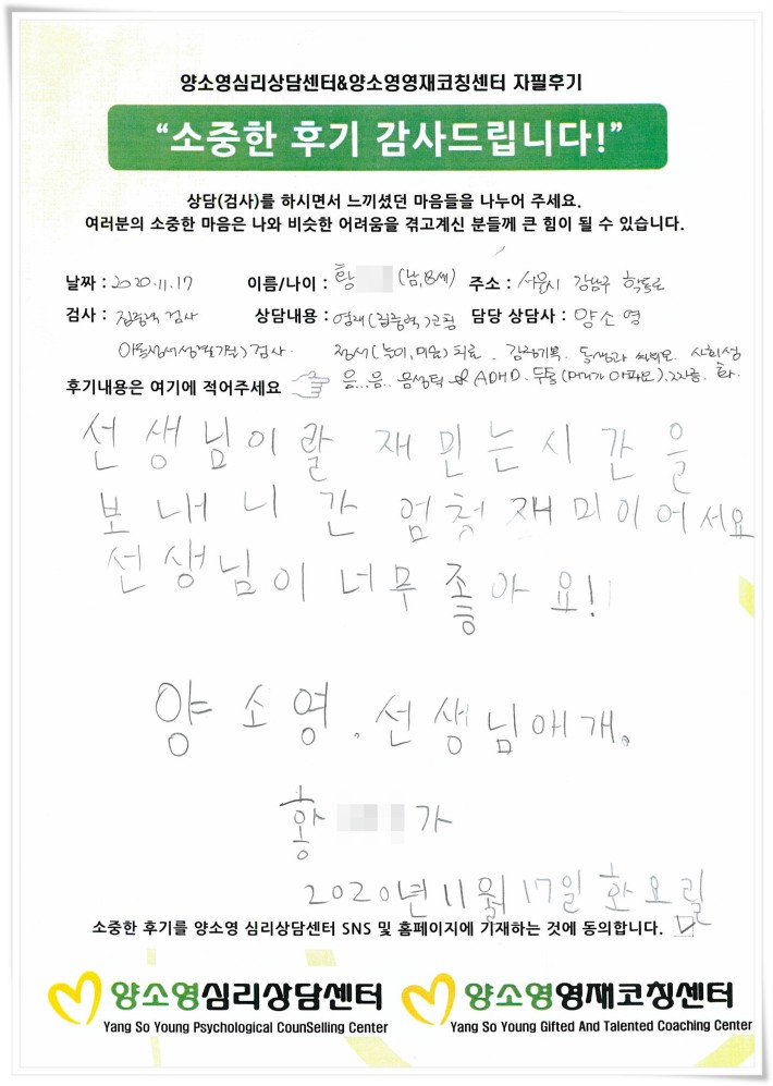 [2020.11.17] 아동상담 / 집중력,아동정서성격기질검사