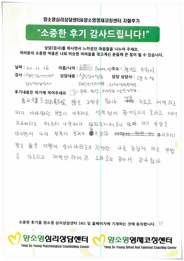 [2020.12.26] 성인상담 / 성인스트레스,진로적성검사