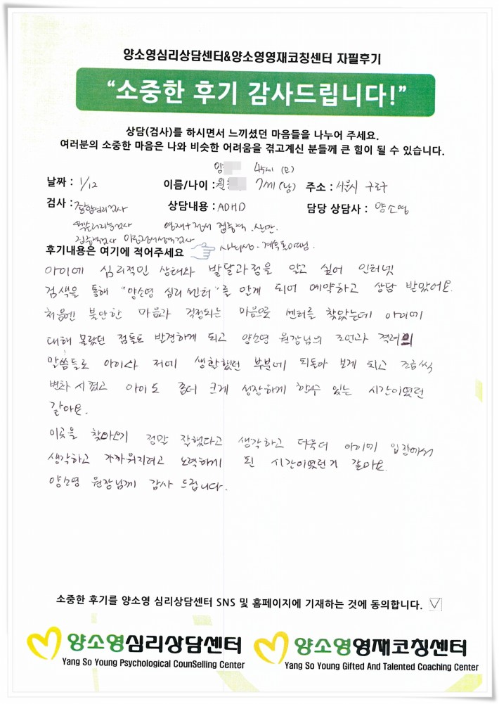 양소영 심리상담센터를 먼저 경험하신