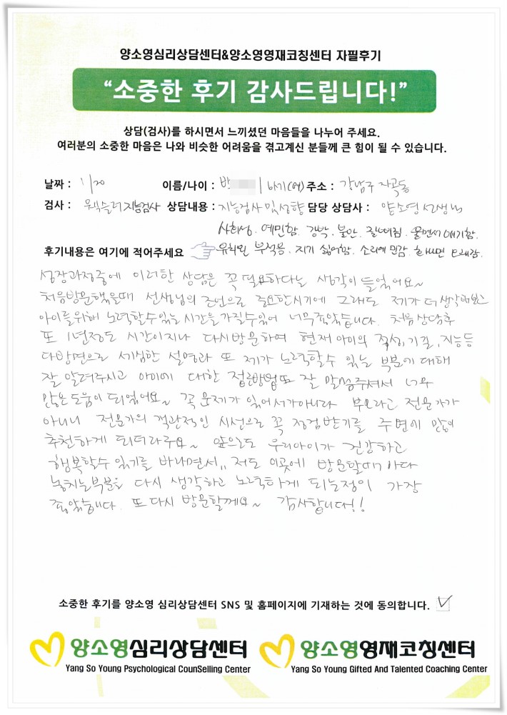 [2021.1.20] 아동상담 / 웩슬러지능검사
