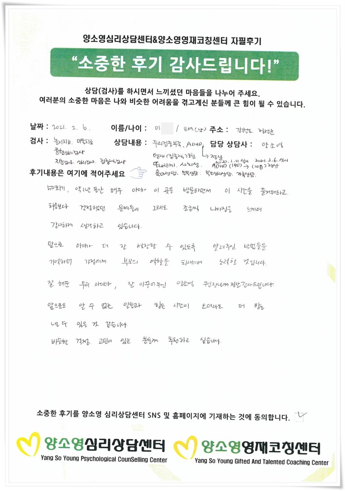 [2021.2.6] 아동상담 / 놀이,미술치료 및 아동집중력코칭
