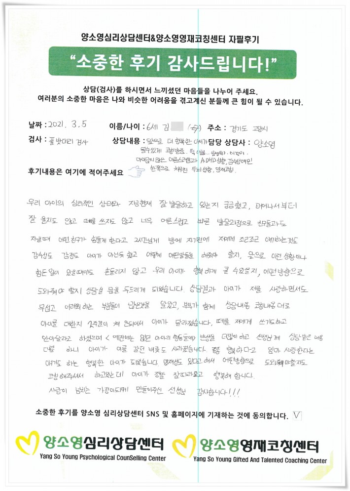 [2021.3.5] 아동상담 / 집중력,아동심리,지능검사
