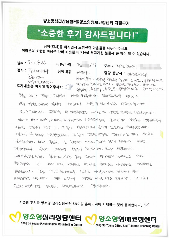 [2021.3.16] 아동상담 / 풀배터리,집중력,아동기질심리검사