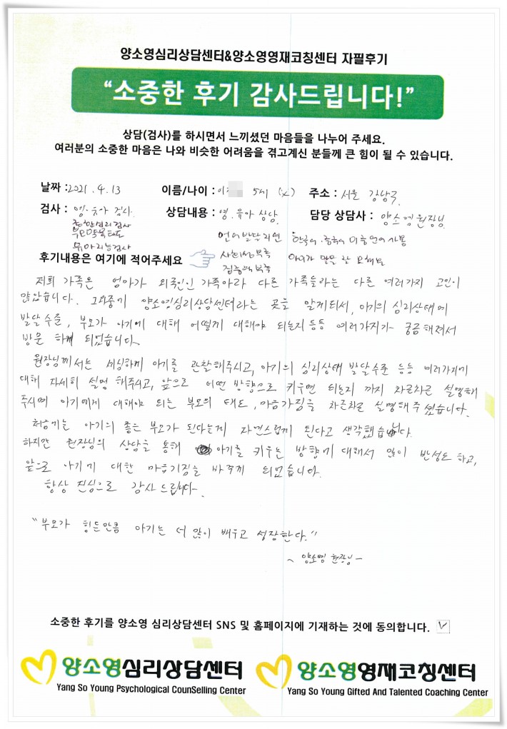 [2021.4.13] 아동상담 / 종합심리,부모양육,유아지능검사
