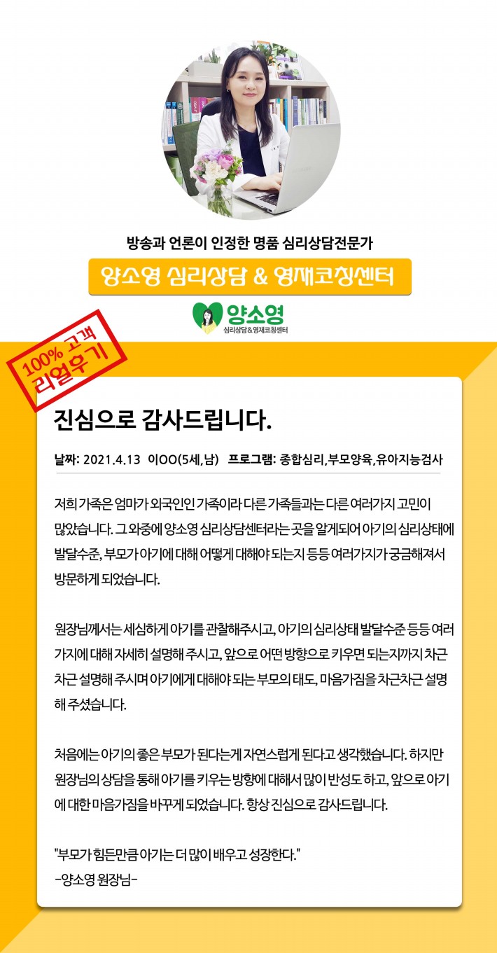 양소영 심리상담센터를 먼저 경험하신