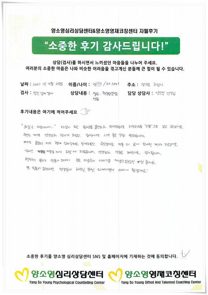 [2021.4.28] 성인상담 / 성인심리검사,직장인상담