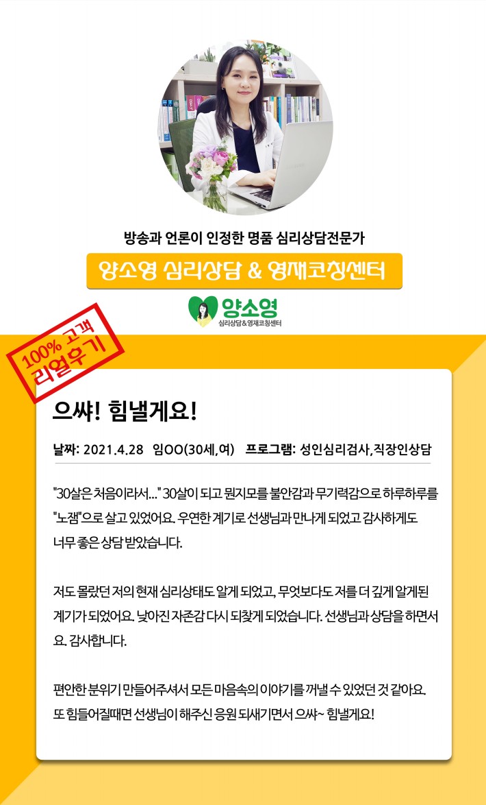양소영 심리상담센터를 먼저 경험하신