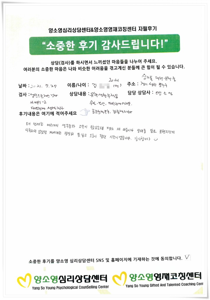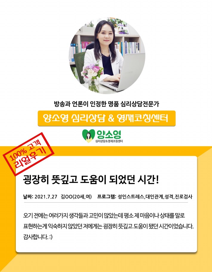 양소영 심리상담센터를 먼저 경험하신