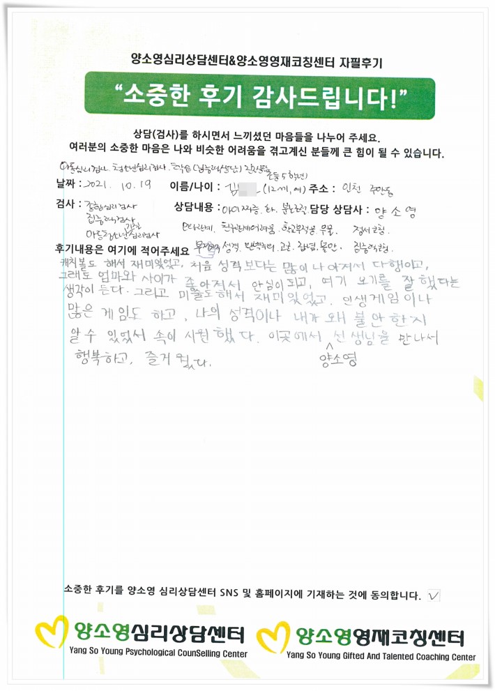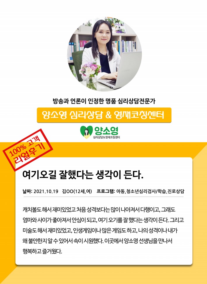 양소영 심리상담센터를 먼저 경험하신