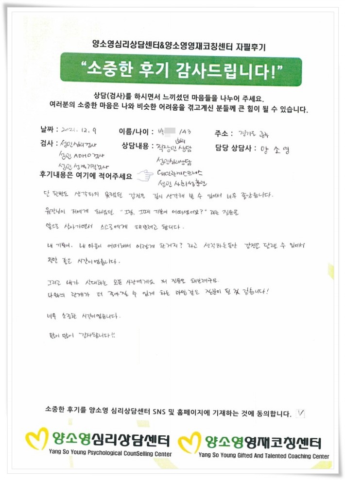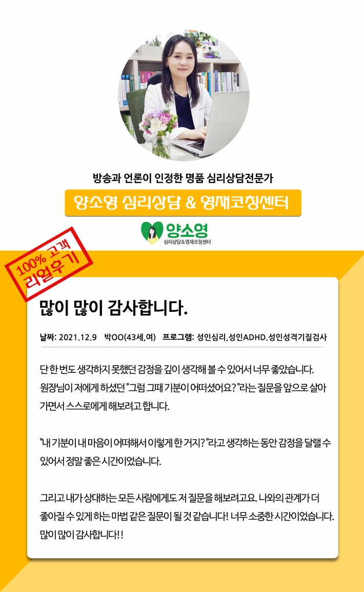 [2021.12.9] 직장인상담 / 성인심리,성인ADHD,성인성격기질검사