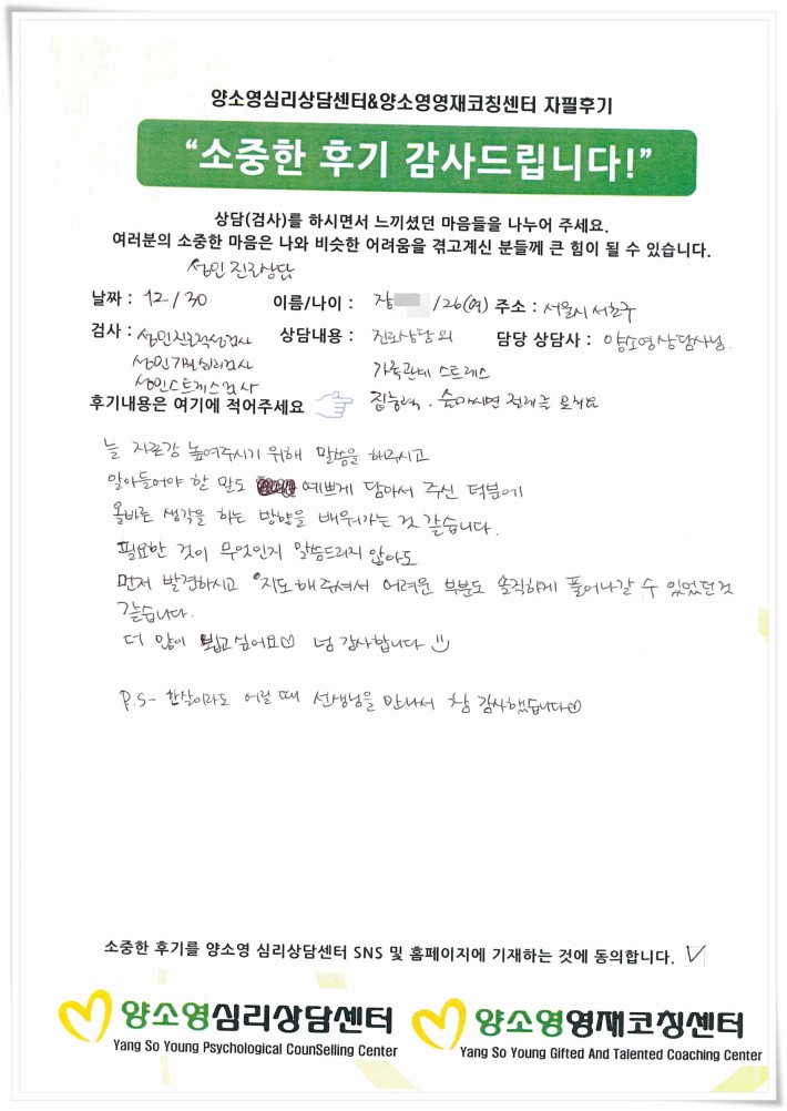 양소영 심리상담센터를 먼저 경험하신