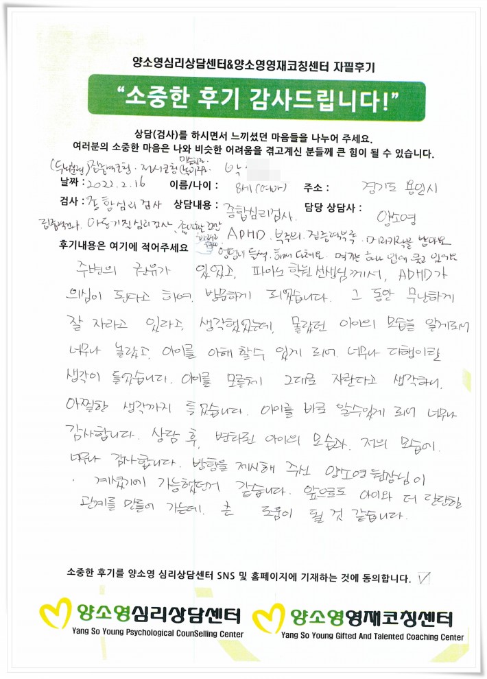 [2022.2.16] 아동상담 / 종합심리,집중력,아동기질심리검사