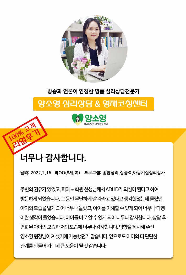 양소영 심리상담센터를 먼저 경험하신