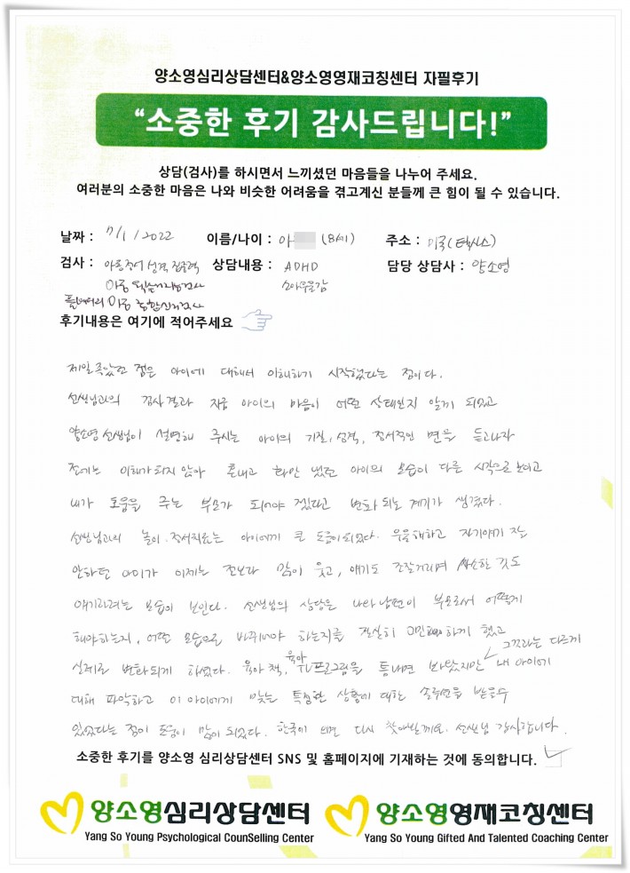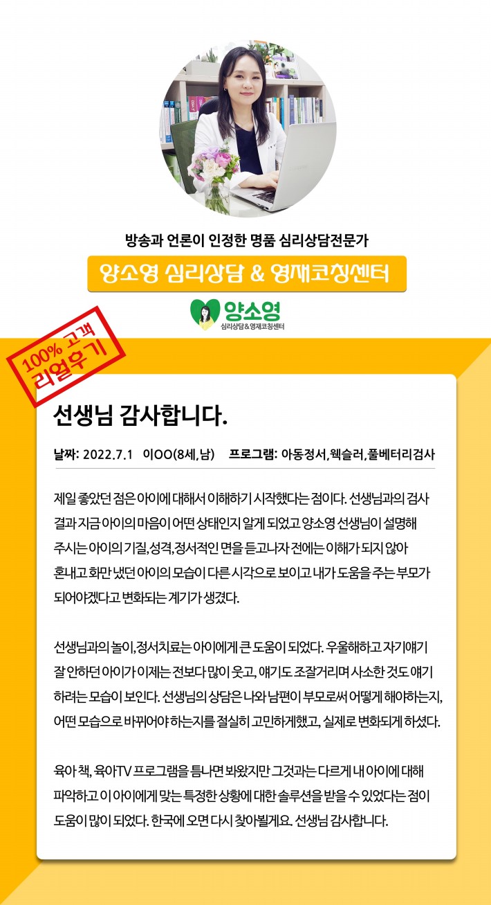 양소영 심리상담센터를 먼저 경험하신