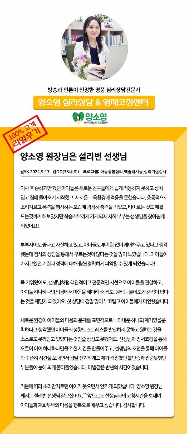 양소영 심리상담센터를 먼저 경험하신