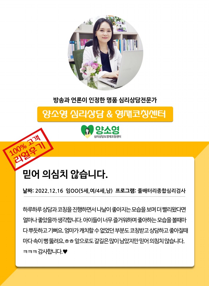 양소영 심리상담센터를 먼저 경험하신
