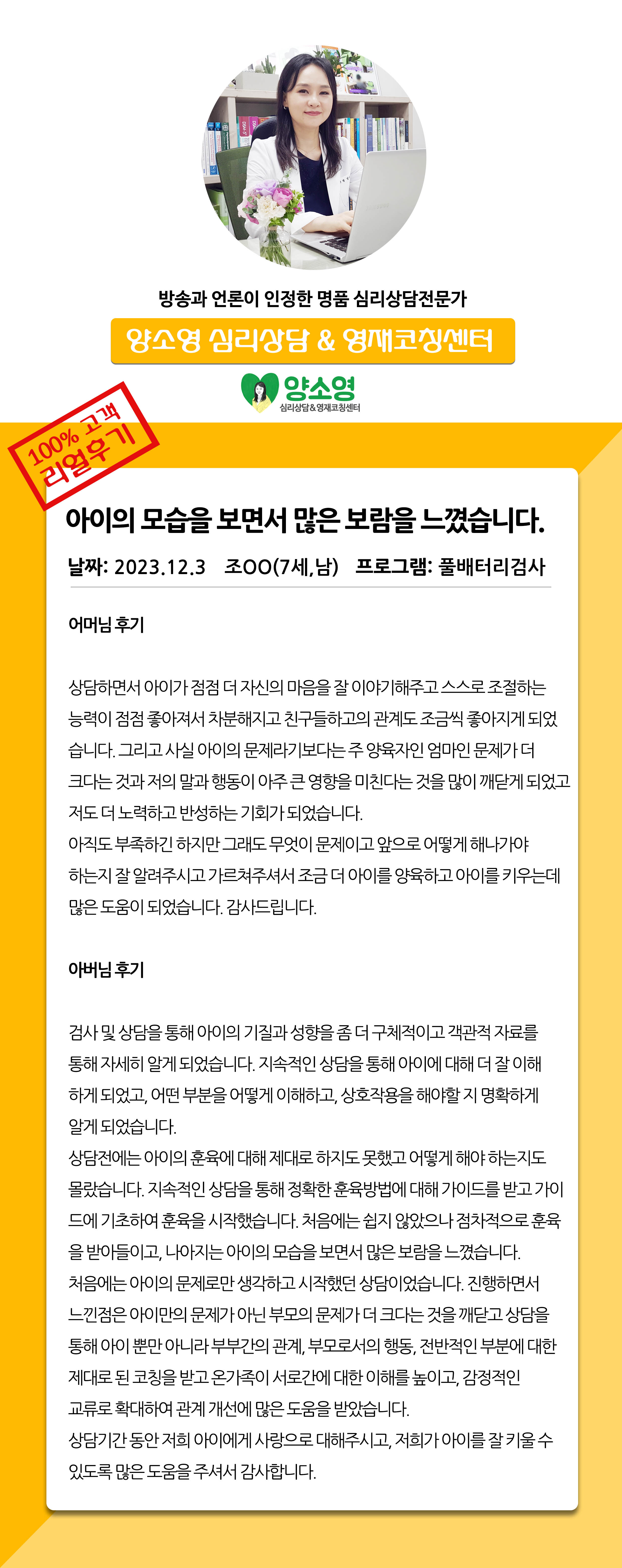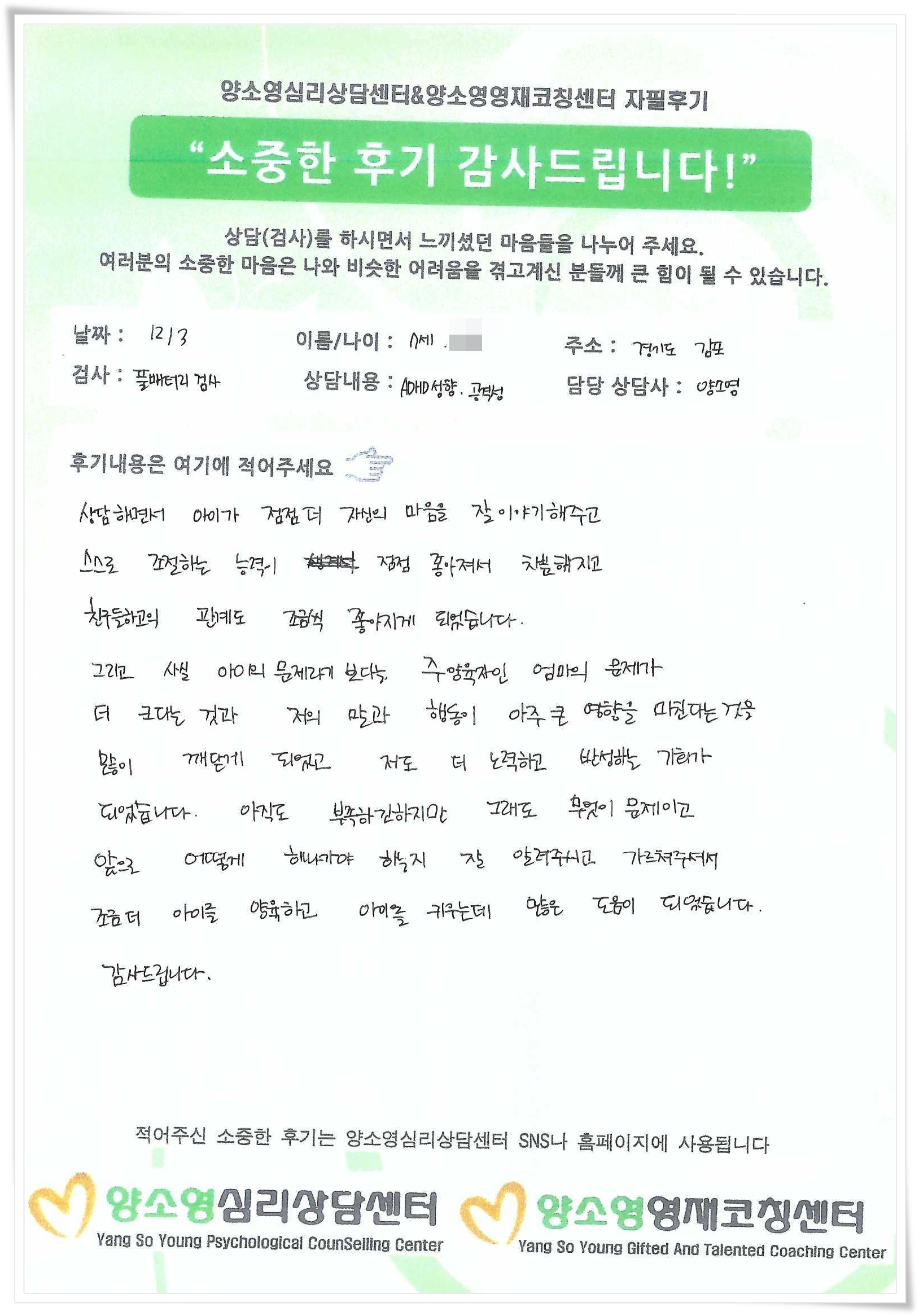 양소영 심리상담센터를 먼저 경험하신