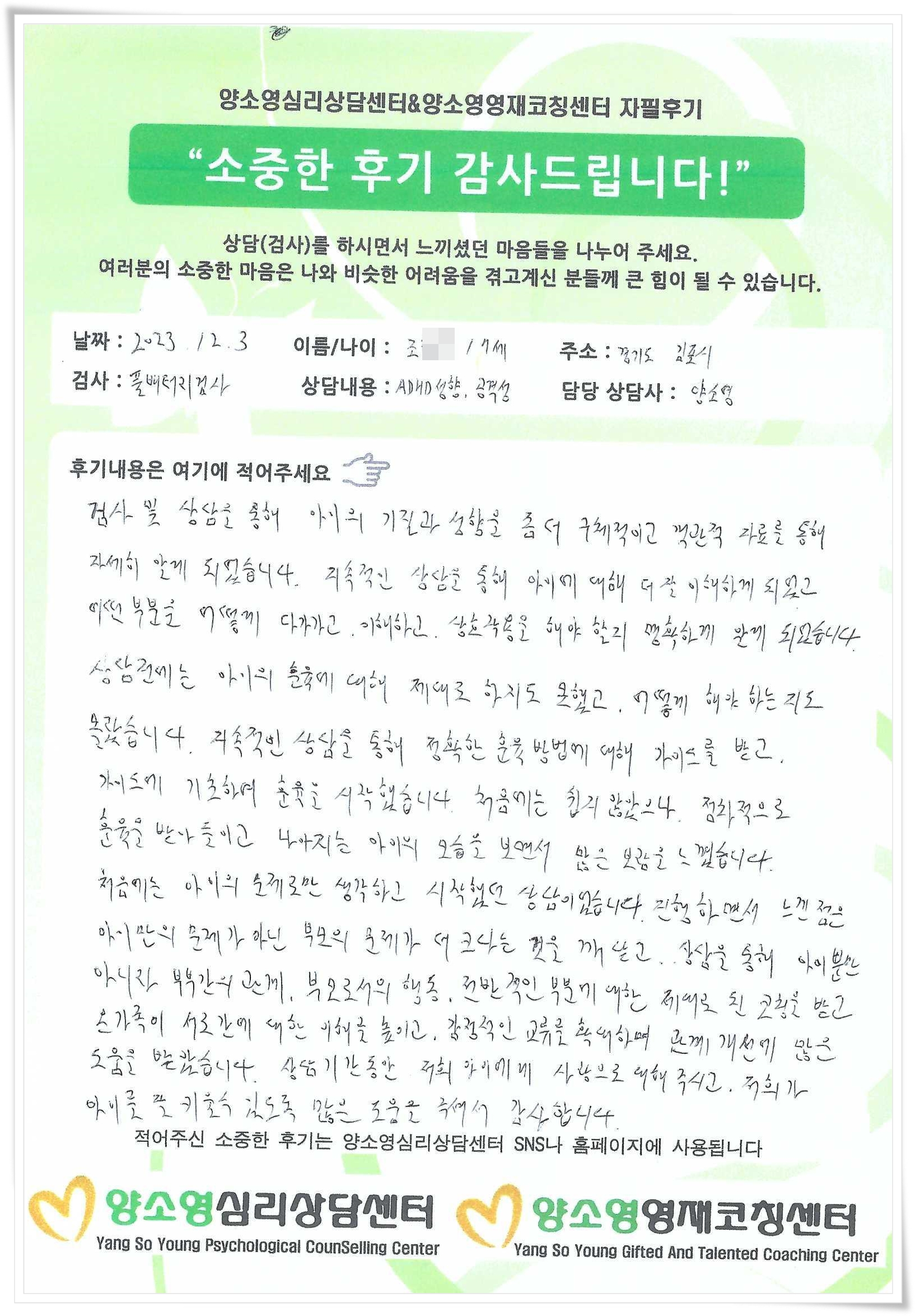 [2023.12.3] 아동심리상담 / 풀배터리종합심리검사