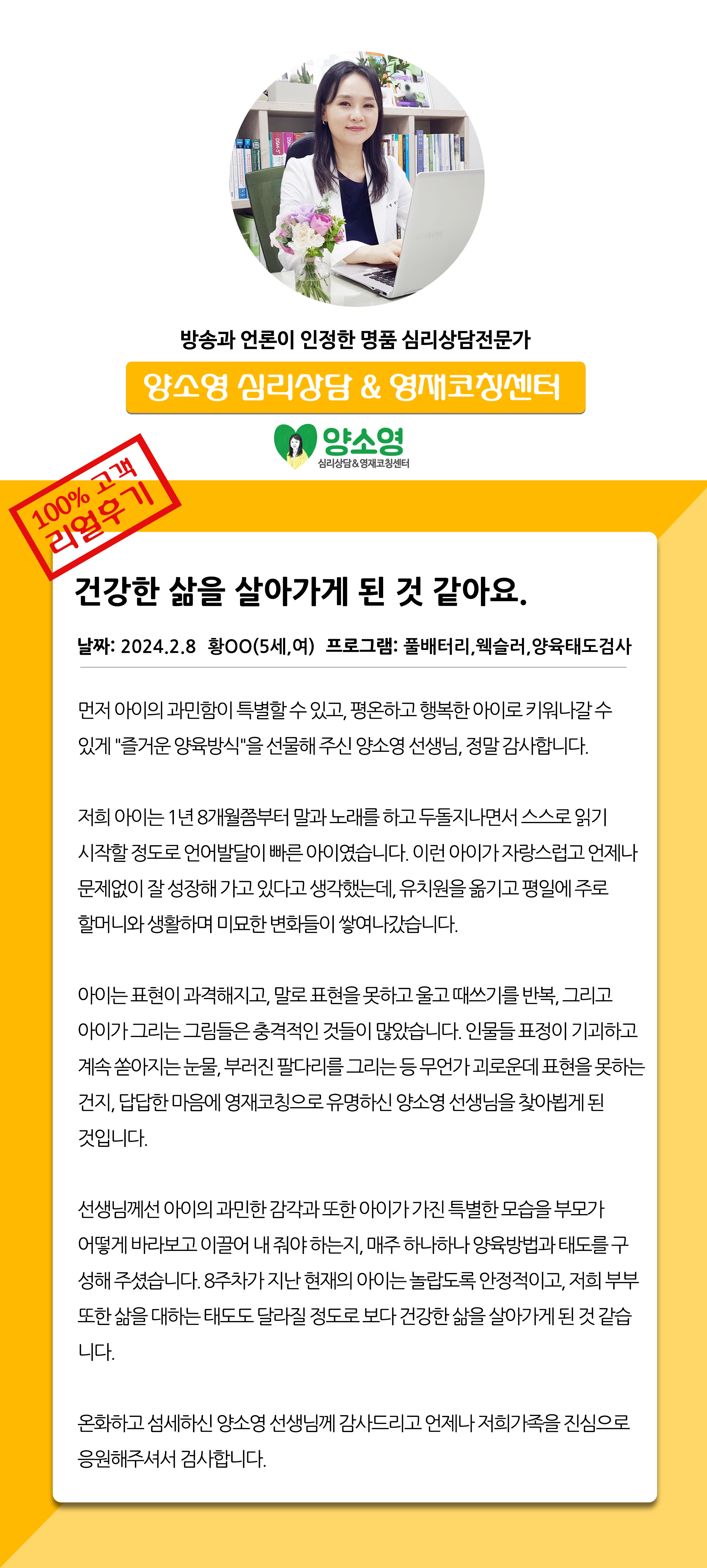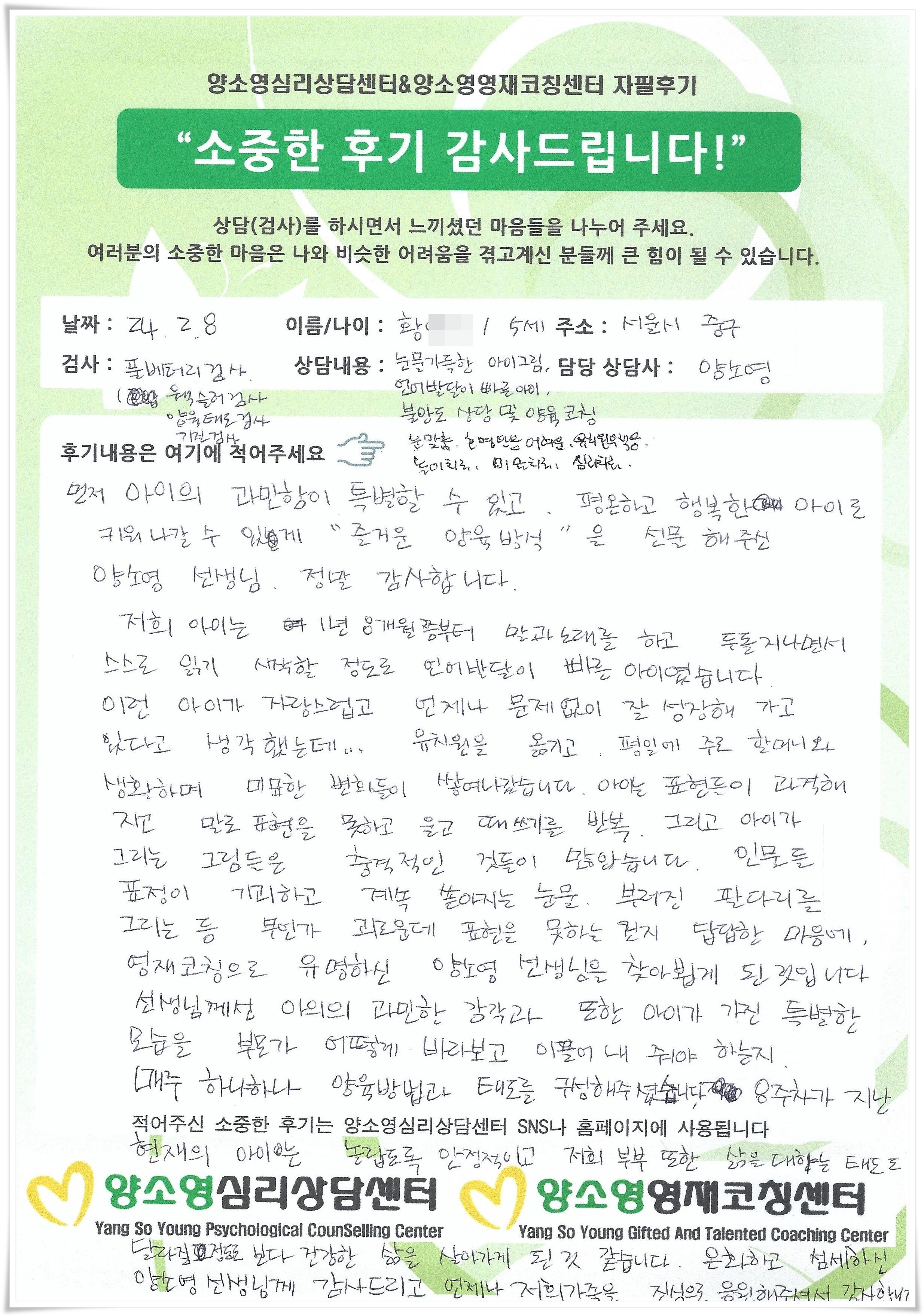 양소영 심리상담센터를 먼저 경험하신