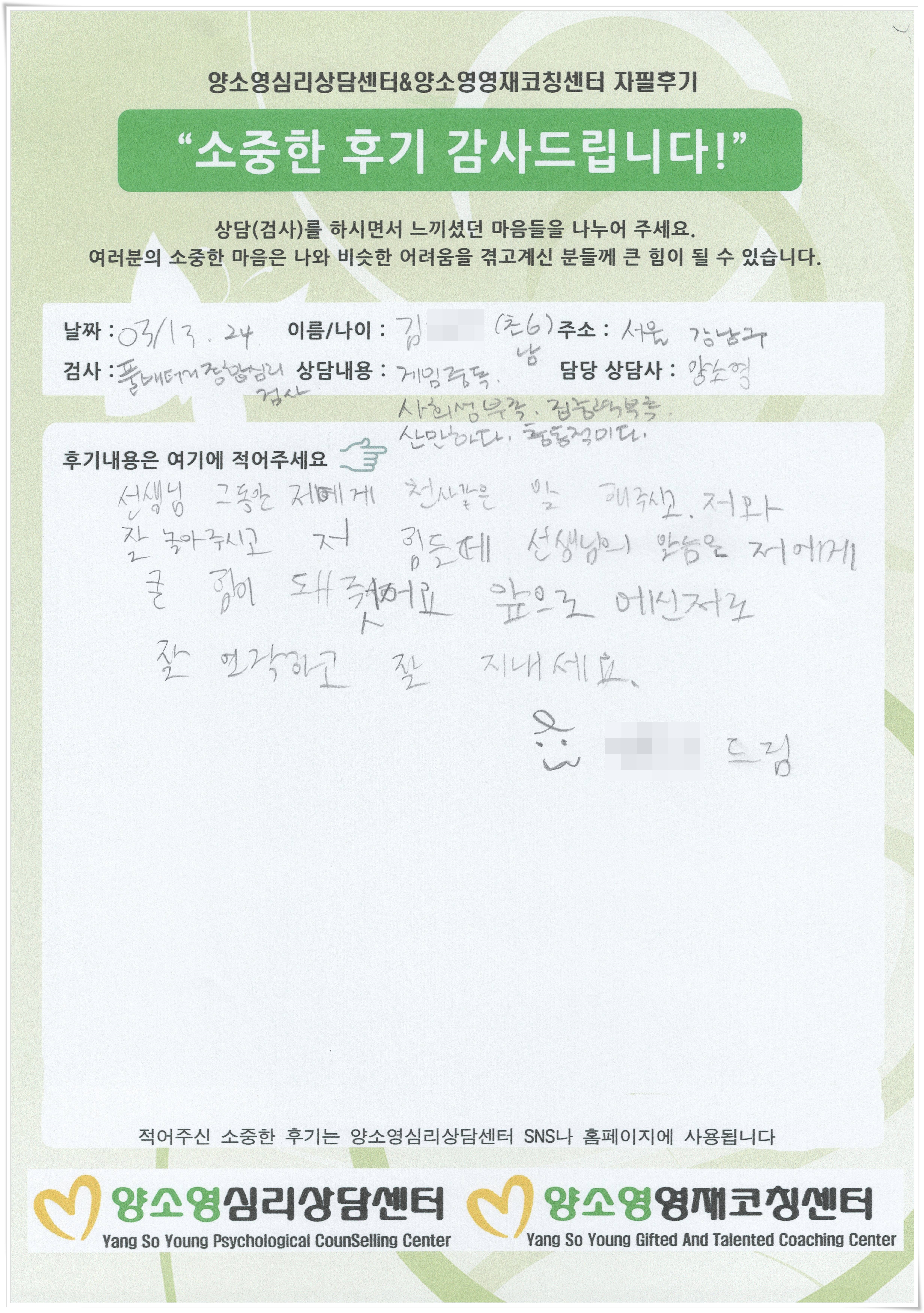 [2024.3.13] 아동심리상담 / 풀배터리종합심리검사