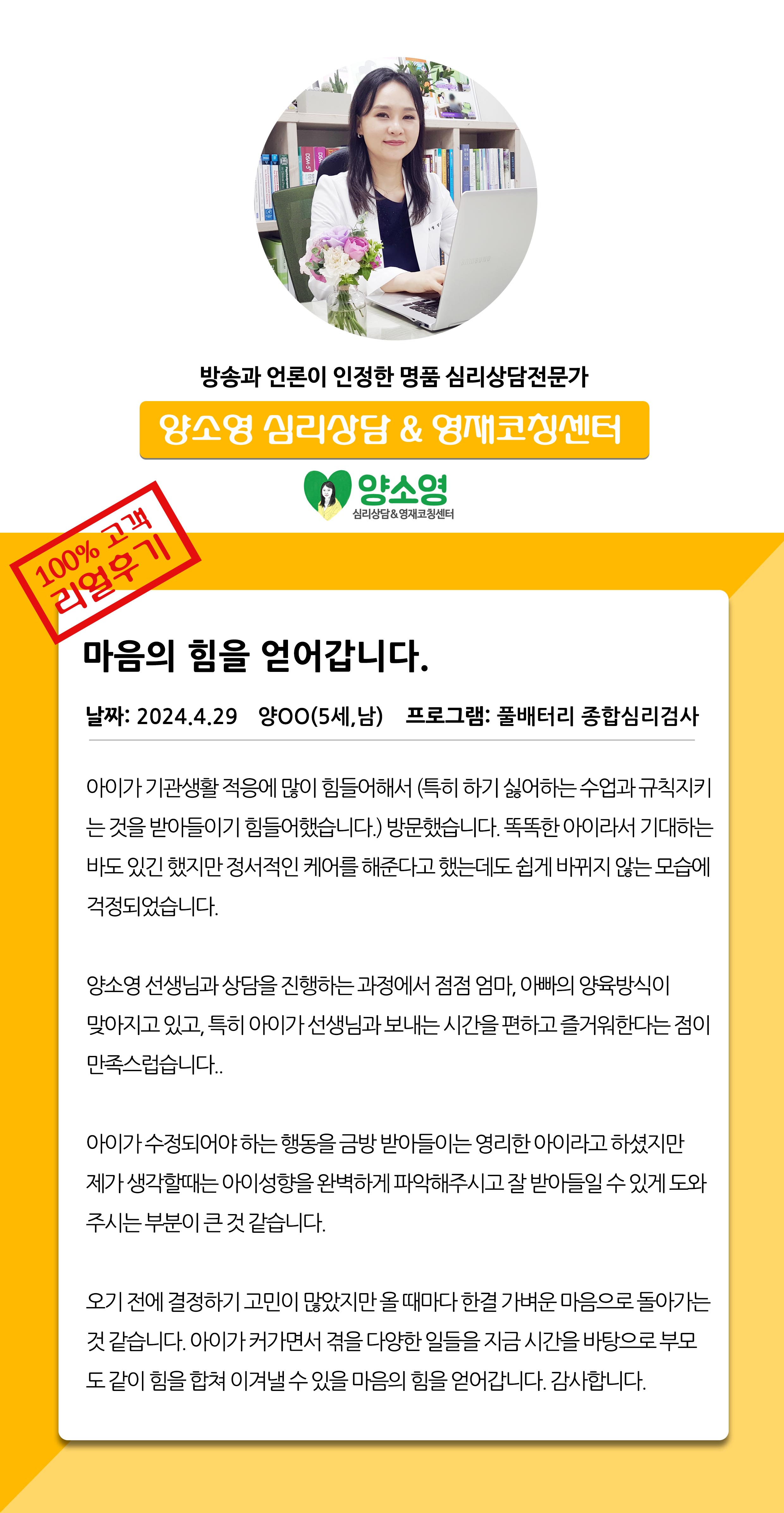 양소영 심리상담센터를 먼저 경험하신