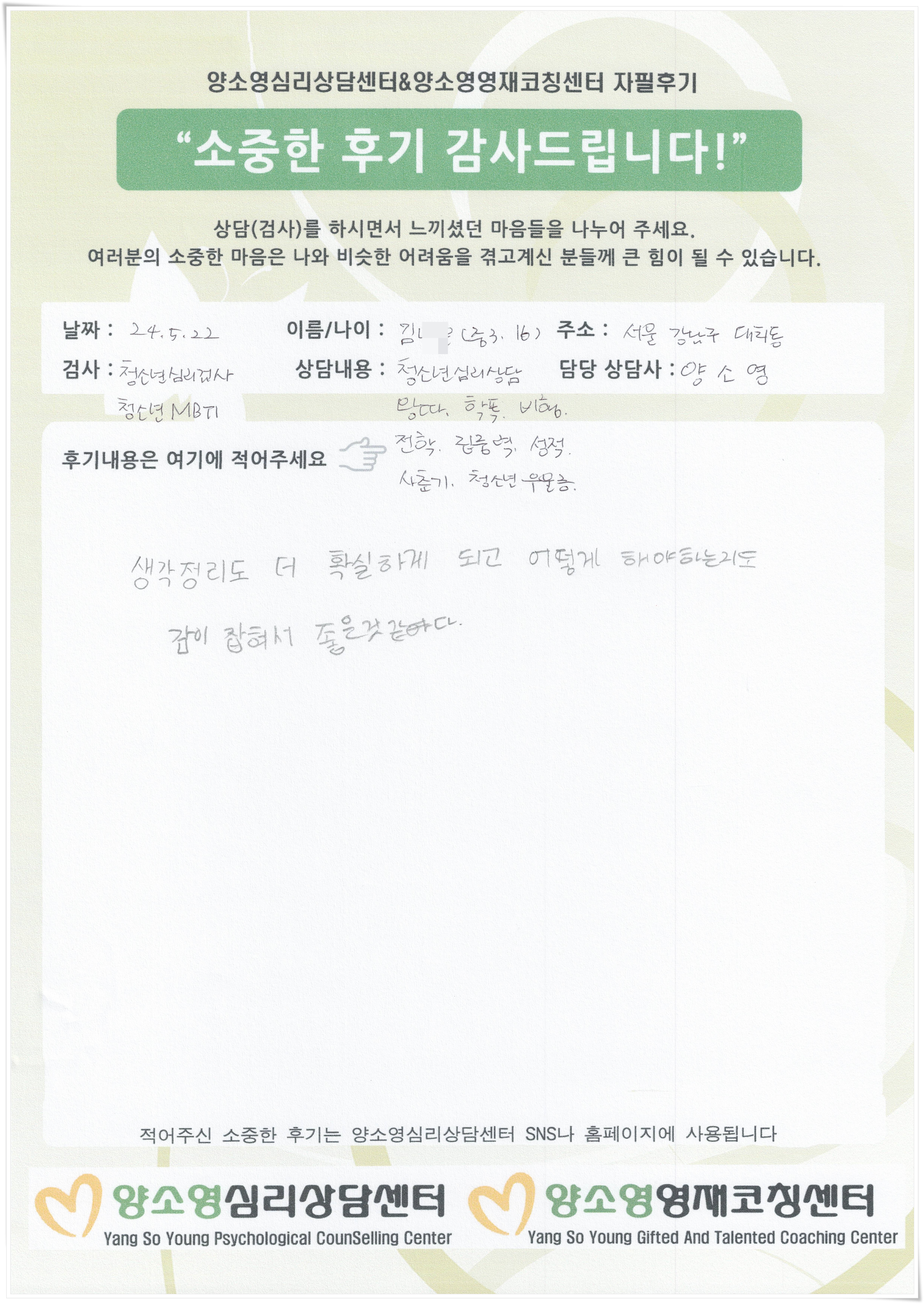 [2024.5.22] 청소년심리상담 / 청소년심리,진로검사